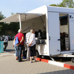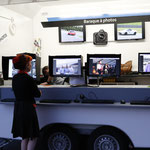 Les participants et spectateurs se dirigent vers la "Baraque à photos" pour visionner les photos et faire une sélection d'images.